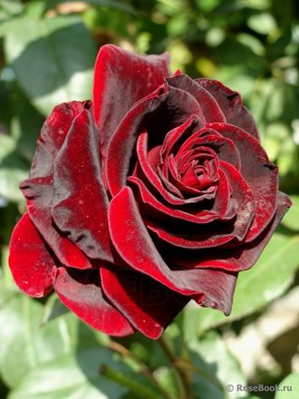 Бутоны этого сорта бокаловидные, в полном роспуске становятся округлыми, темно-красной окраски. В высоту растение до 100-150см. Лепестки бархатные, плотные, с серебристым налётом. Цветение с июня по начало сентября.