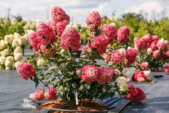 В наличии есть горшки по 200руб. Растение относится к группе низкорослых компактных гортензий высотой до 1,3 м и шириной до 1,1 м. Бутоны начинают формироваться в южной части России в конце июня, а в средней полосе в начале июля и стоят до первых заморозков. В самом начале цветения лепестки молочно-белые с легким зеленоватым оттенком. В роспуске окраска меняется на светло-розовую, а ближе к августу становится более насыщенной. К концу сезона лепестки темнеют, приобретая глубокий рубиновый окрас.