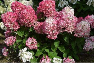 Гортензия Pink diamond характеризуется крупными габаритами, ее высота достигает 2 м, а ширина – 300 см. Сначала цветы имеют нежный сливочно-белый оттенок, затем лепестки темнеют до кремового отлива, постепенно румянятся и к концу цветения покрываются почти красной расцветкой. Цветение продолжается до сентября. Такая переменчивая цветовая палитра позволяет создавать из представленного сорта самые причудливые цветочные композиции.