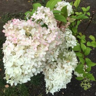 Гортензия «Диамантино» – популярный декоративный сорт гортензии, а также один из самых крупных среди других представителей вида. При надлежащем уходе он может вырастать до 2 м, хотя обычно в высоту он достигает около 1,2–1,5 м, при ширине 1–1,2 м. Во время цветения растение выглядит особенно пышным из-за множества соцветий, а его листвы почти не видно.