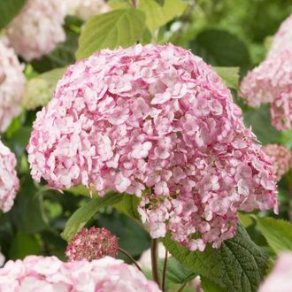 Компактный кустарник, достигающий 1 м в высоту и в ширину. Кандибелле Баблгам отличается цветками розового цвета по краям лепестков и белым центром. Они собраны в шаровидные соцветия, 25 см. Цветение с июня и до сентября. Гортензия Кандибелле Баблгам прекрасно себя чувствует в ажурной полутени.