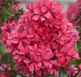 Новый гибрид с исключительными цветками звездчатой формы и дополнительным слоем лепестков. Цветки выглядят объемными и пушистыми. Окраска венчика коралловая. Высота флокса около 55 см. Флокс практически не поражается мучнистой росой, пятнистостью листьев и другими грибными заболеваниями. Цвести Клеопатра будет с июля до конца сентября.